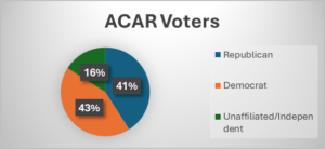 - 84% of ACAR members are registered voters.